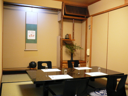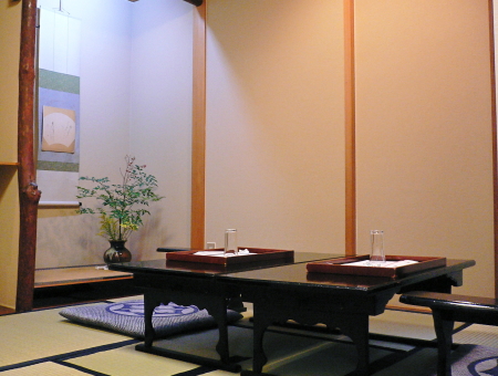 心やすまる伝統の座敷造り 落ち着いた茶室風のお座敷でおむかえし、武者返し、畳石、竹垣、杉綱式の天井、時折聞こえる水音など思うかぎりの趣向で、京都の心を伝えます。 ご商談やご接待、ご宴会やグループでのご会合、ご家族のお慶びの会の集まり等にご利用ください。 1F/カウンター席 2F/茶室・紅の間・竹の間 3F/杉の間・嵯峨の間・桜の間 ※2名から20名様までご用意できます。 茶室 4名 紅の間 6名 竹の間 6名 杉の間 4名 嵯峨の間 4名 桜の間 8名