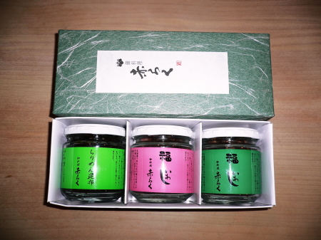 京都の山椒を加えた山椒煮や紀州の紅梅で煮上げた梅煮のほかお番茶煮など三種類ございます